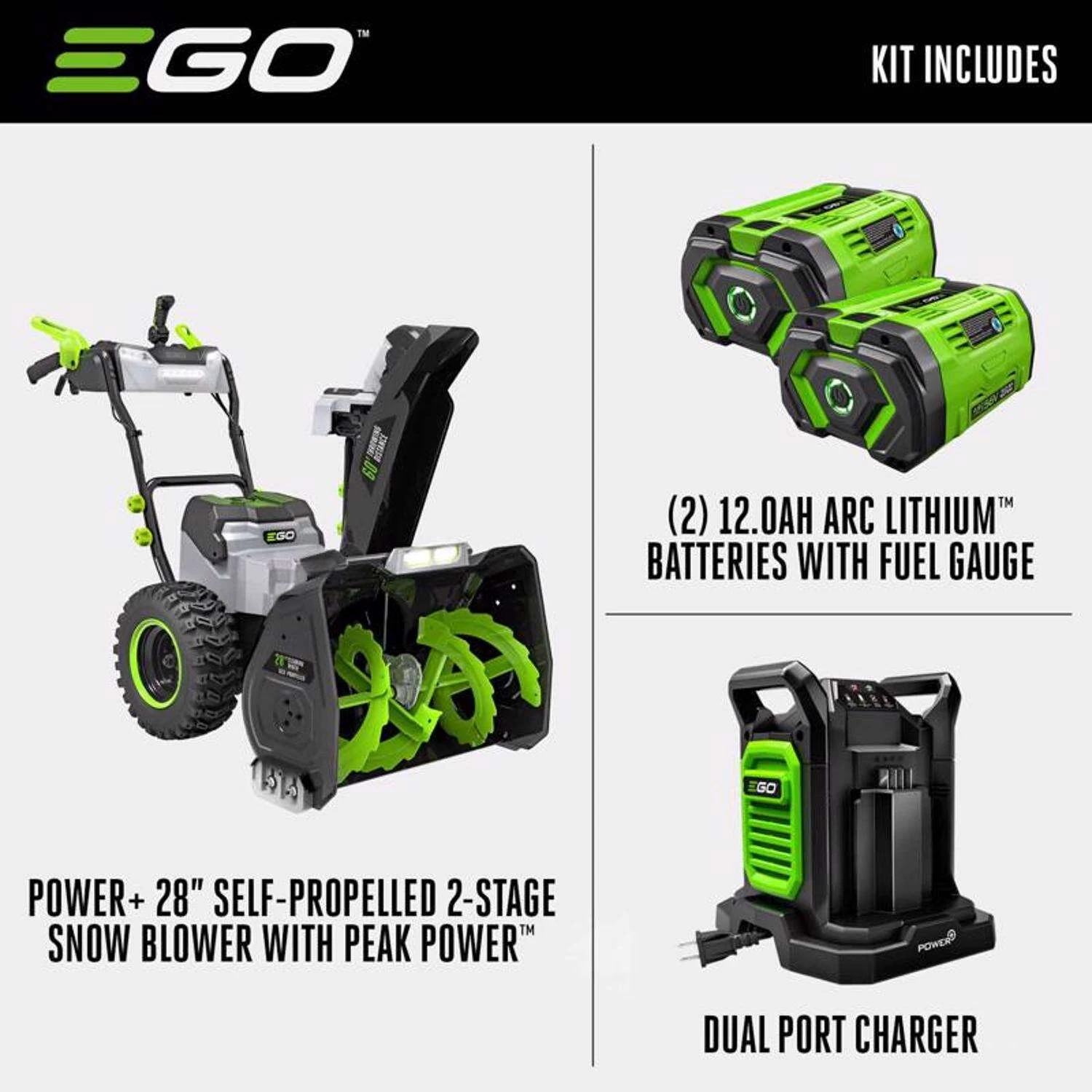 Be the first to review “EGO Power+ Peak Power SNT2807 28 In. Two Stage 56 V Battery Snow Blower Kit (Battery & Charger) W/ 2-IN-1 CHUTE ADJUST & (2) 12AH BATTERIES” Cancel reply